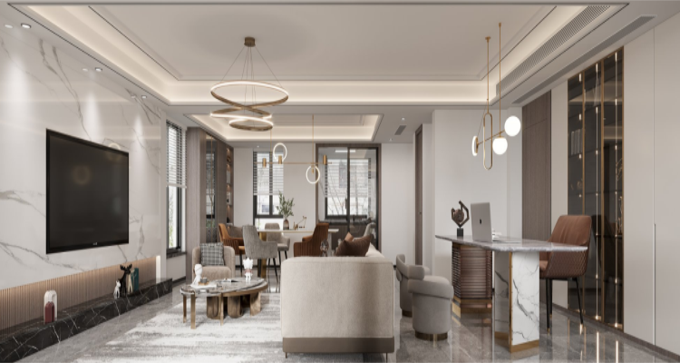 在装饰上,现代极简风格装修体现了简洁又不简单的特点,这一点跟现代简约十分相似。极简风格会去除复杂的装饰,改用线条和色块来做区分或者点缀,通过最简单的形式、最理性的设计手段,追求一种纯粹、无杂质的艺术效果。