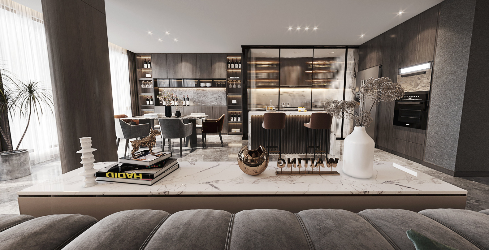 设计理念:轻奢风格主要是以简约风格为基础,以简洁硬朗的直线条为元素,通过一些精致的软装元素来凸显室内装修风格的质感,同时也可以浓缩房屋的功能与细节,从而凸显出来高品质的生活方式。轻熟风的特点主要是简洁、古今融合、色彩鲜明等等,其色彩主要以高级灰和高级黑为主,给室内一种利落的感觉,使室内质感更加的饱满。